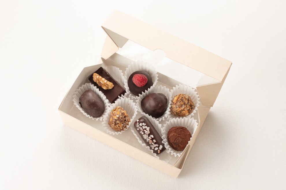 Ассорти конфет ручной работы в подарочной коробке 8 шт - мексика, фундук, трюфель, финик, малинка