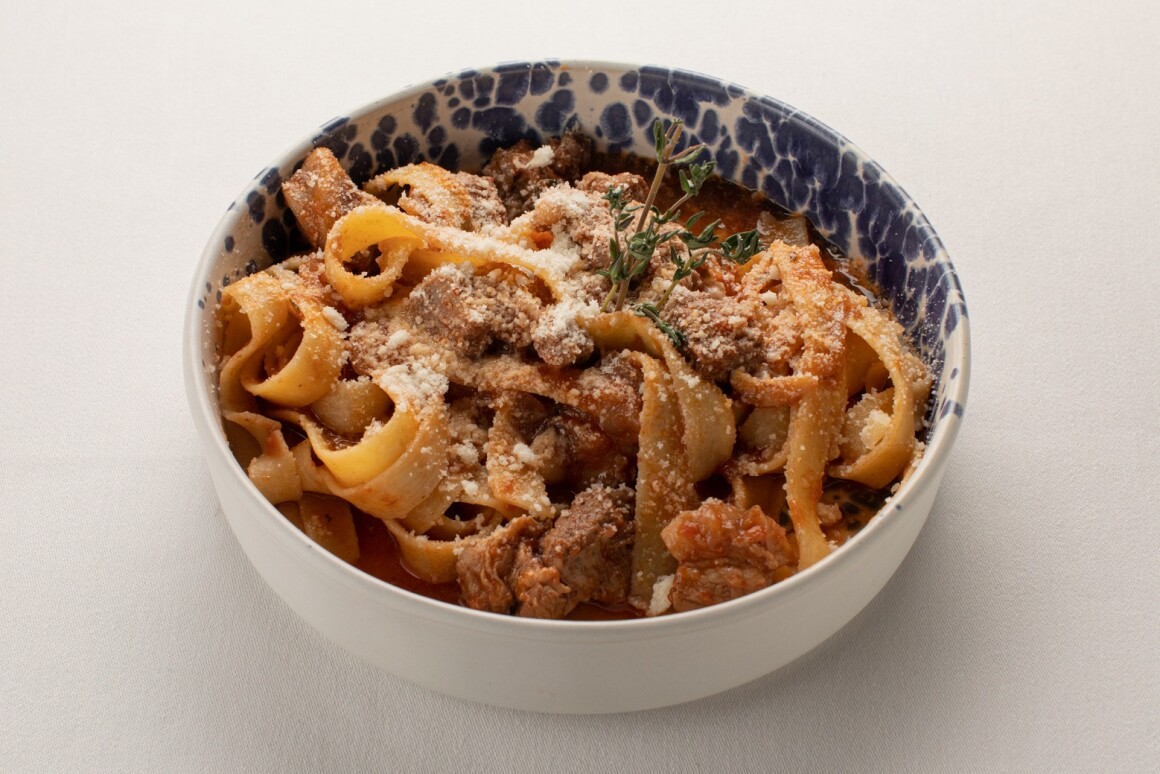 Домашние тальятелли с томленным рагу из кабана и сыром пекорино 290гр - 680р