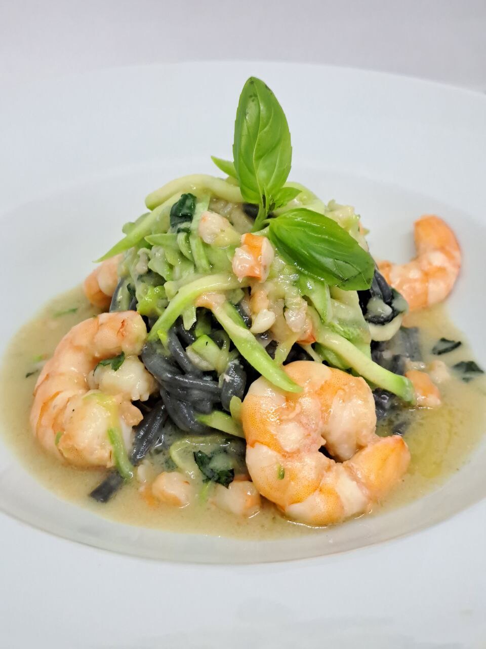 ЧЕРНЫЕ СПАГЕТТИ С КРЕВЕТКАМИ И КАБАЧКАМИ