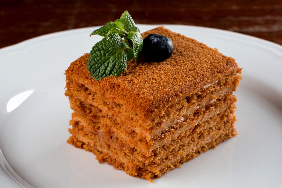 Слоеный торт из медовых коржей с заварным кремом со сгущенкой