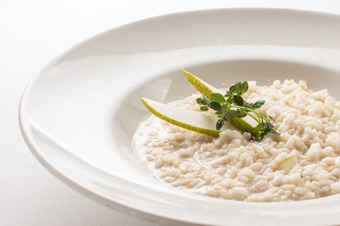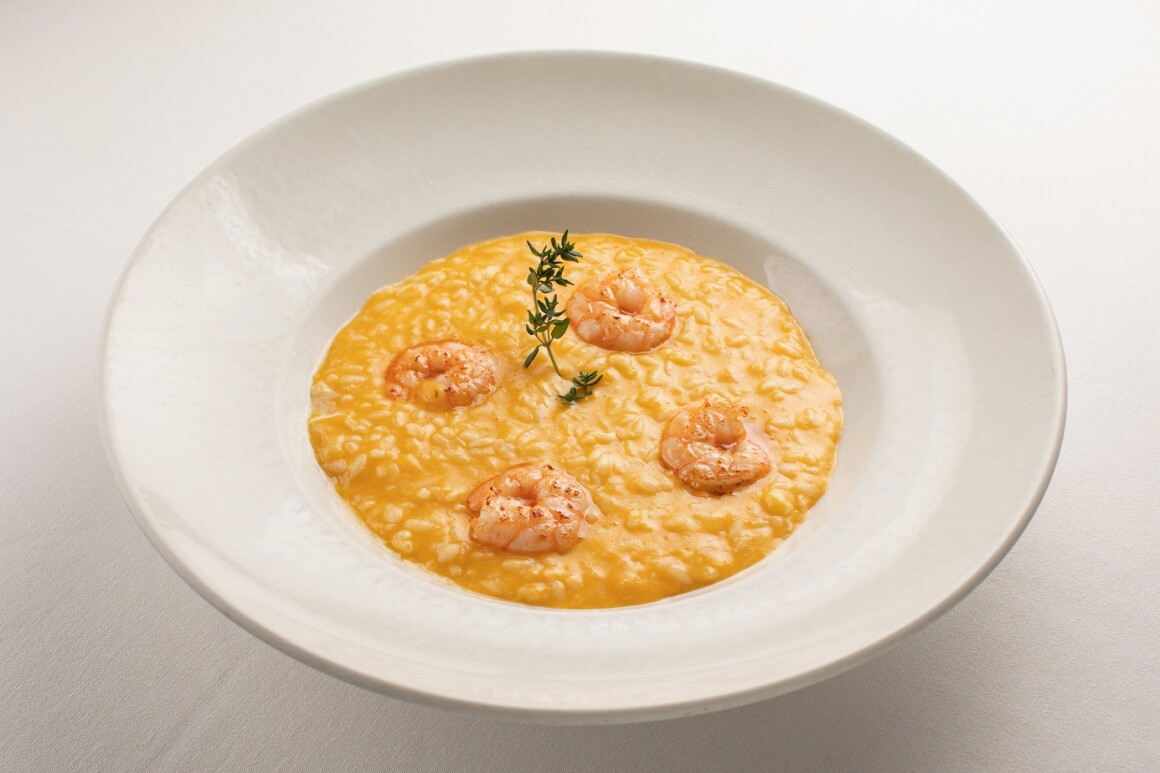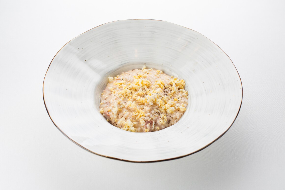 - Ризотто с тыквой, сливками, сыром рокфорти и колбасой мортаделлой