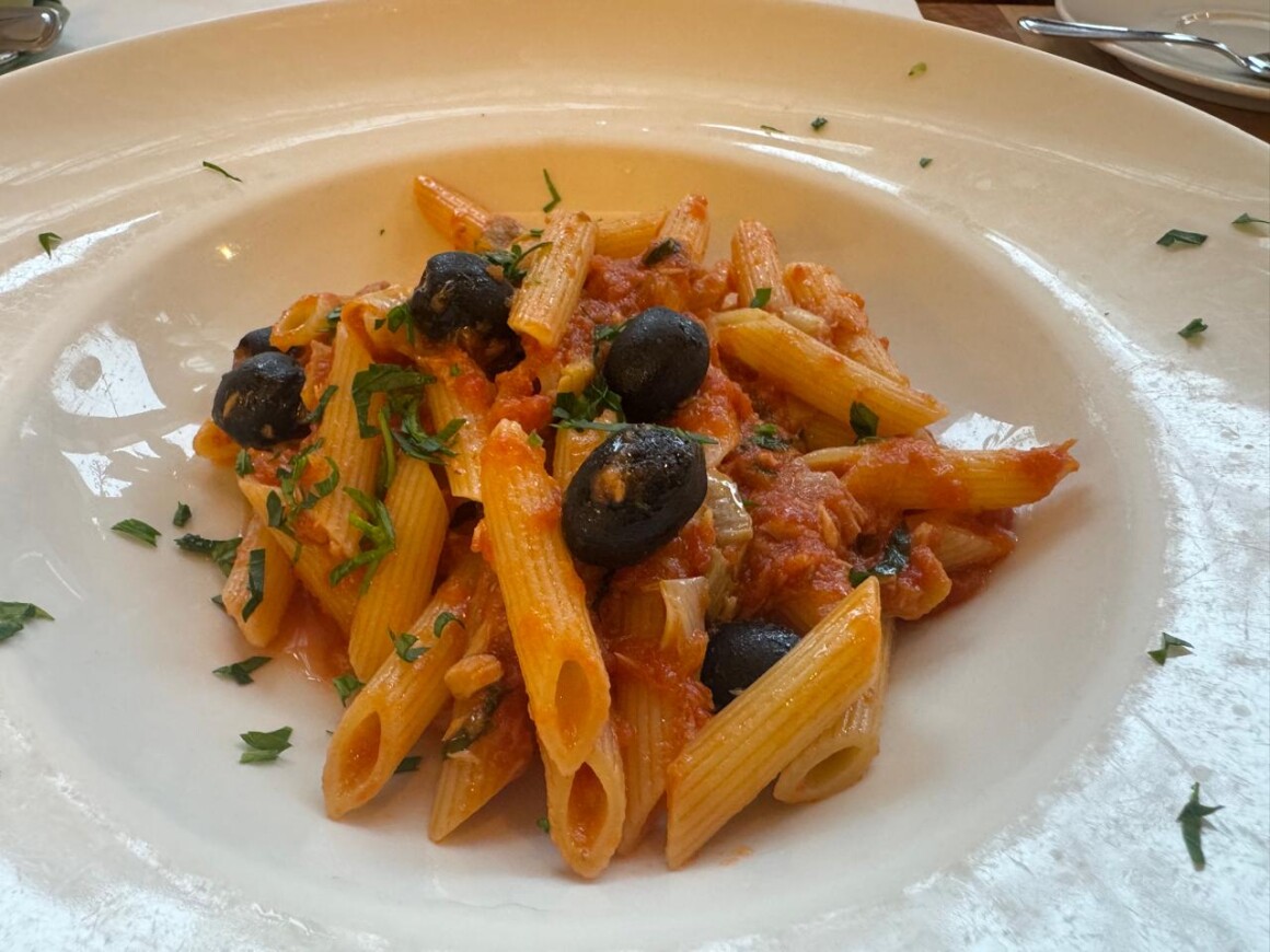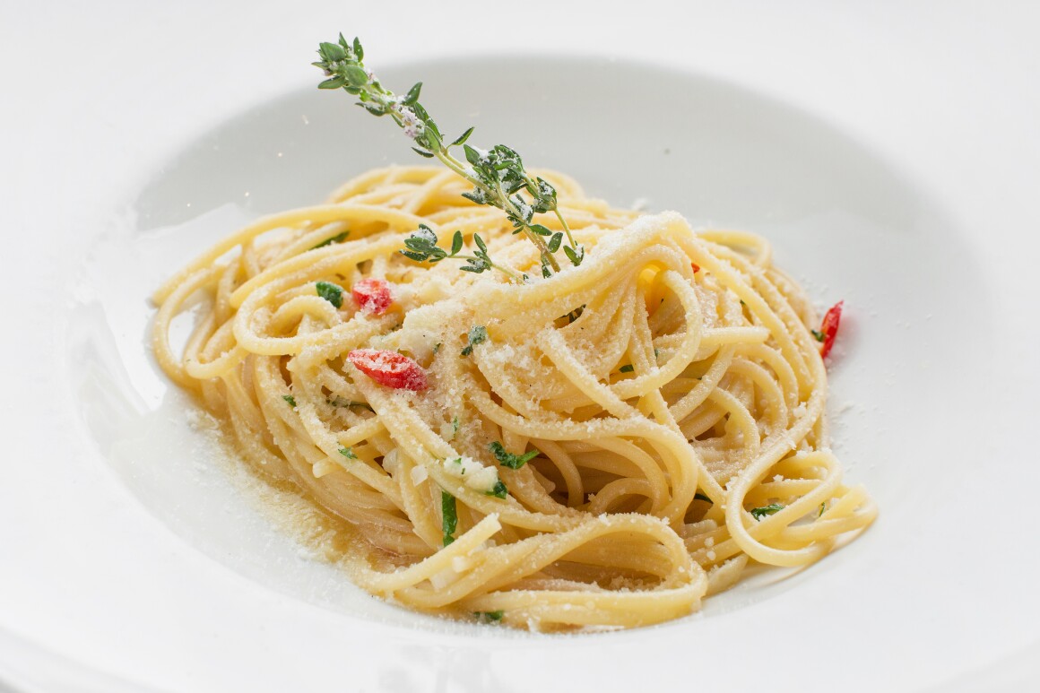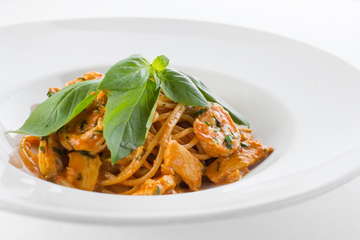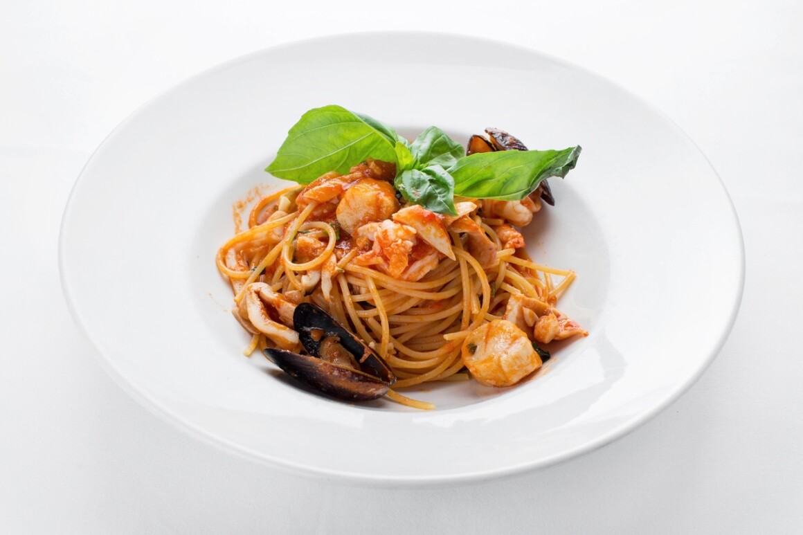 - Паста с кальмарами, вином, чесноком, помидорами черри, перцем чили и базиликом