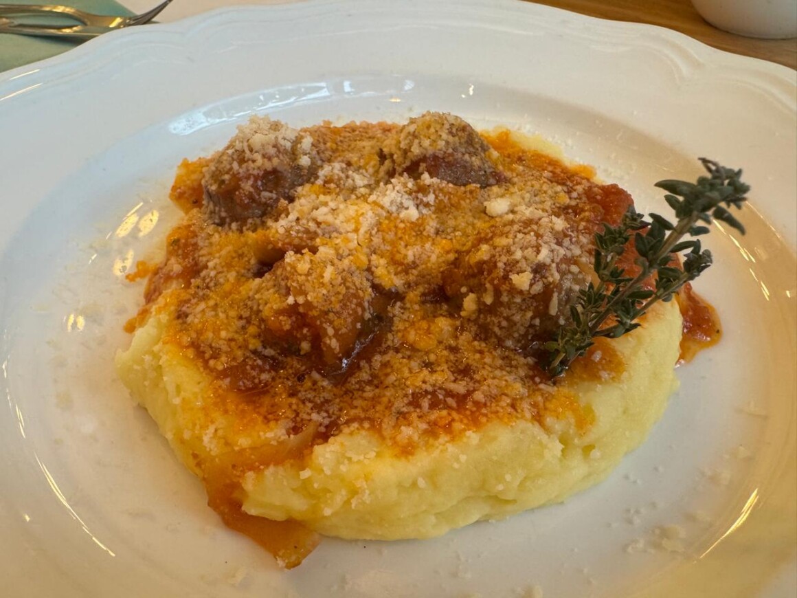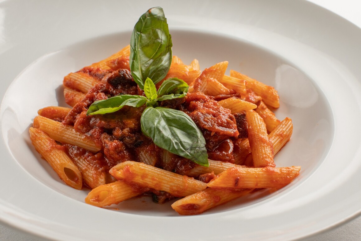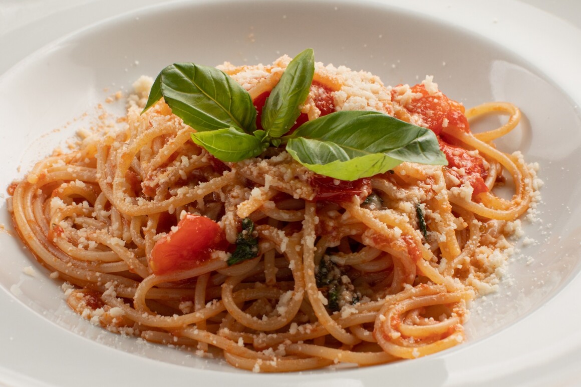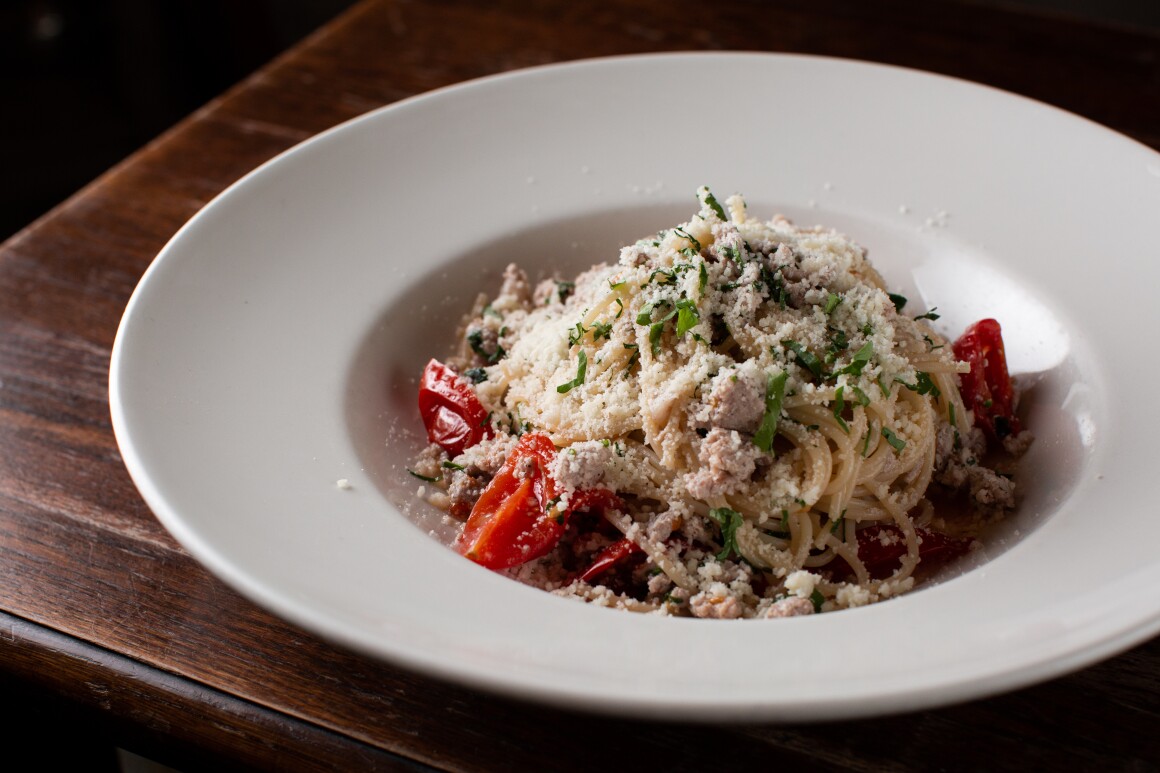 - Домашняя паста с рубленной говядиной, томатным соусом и пармезаном