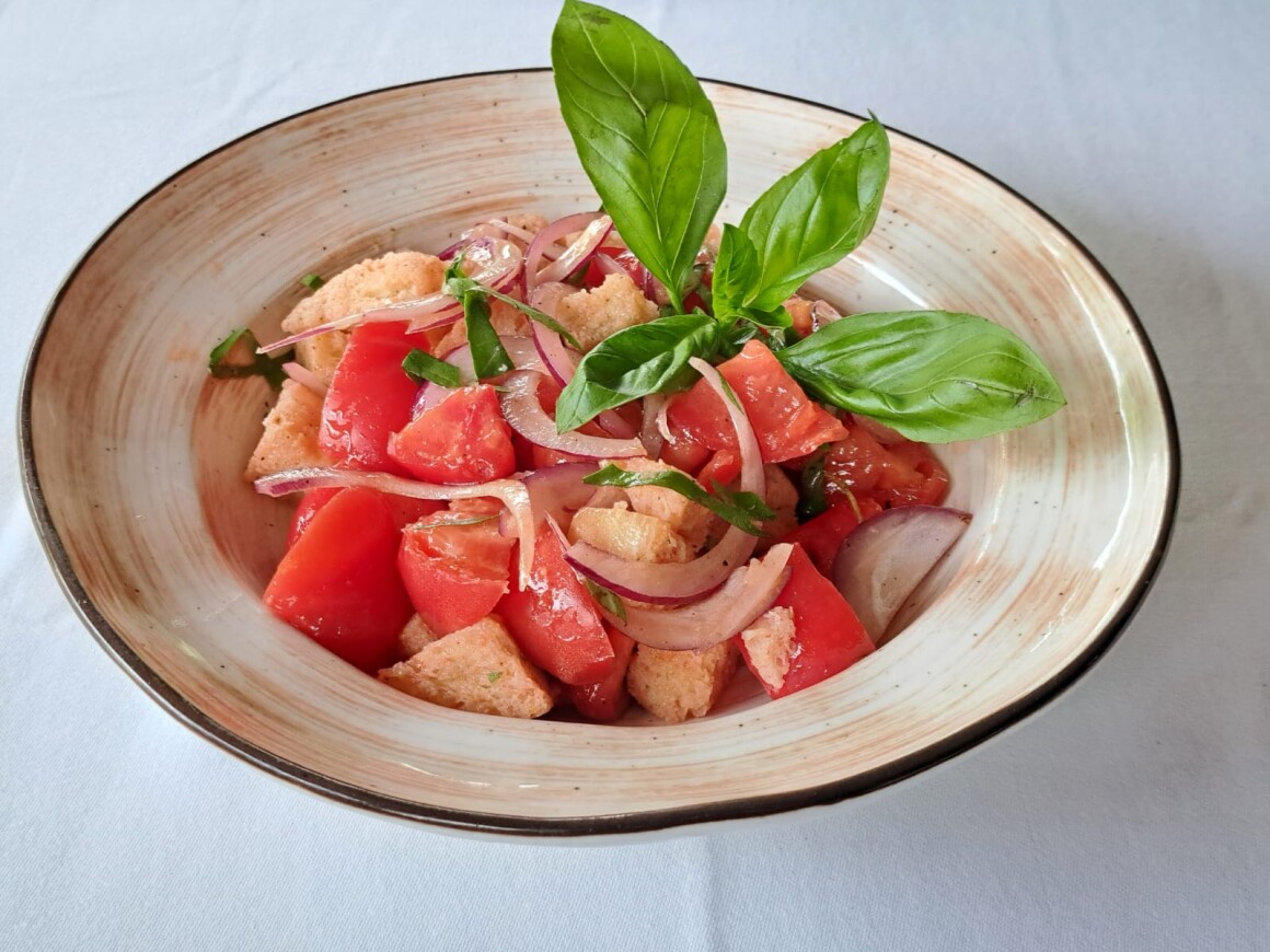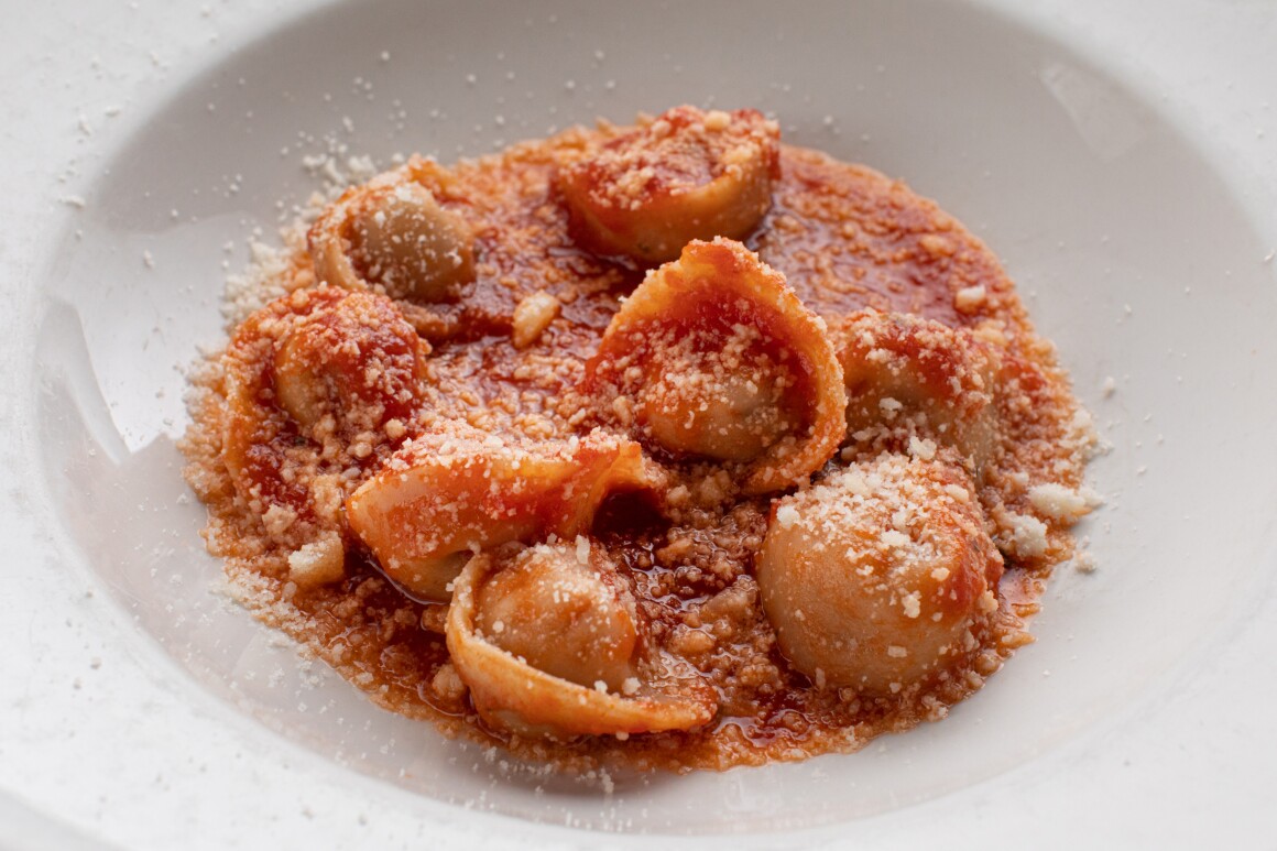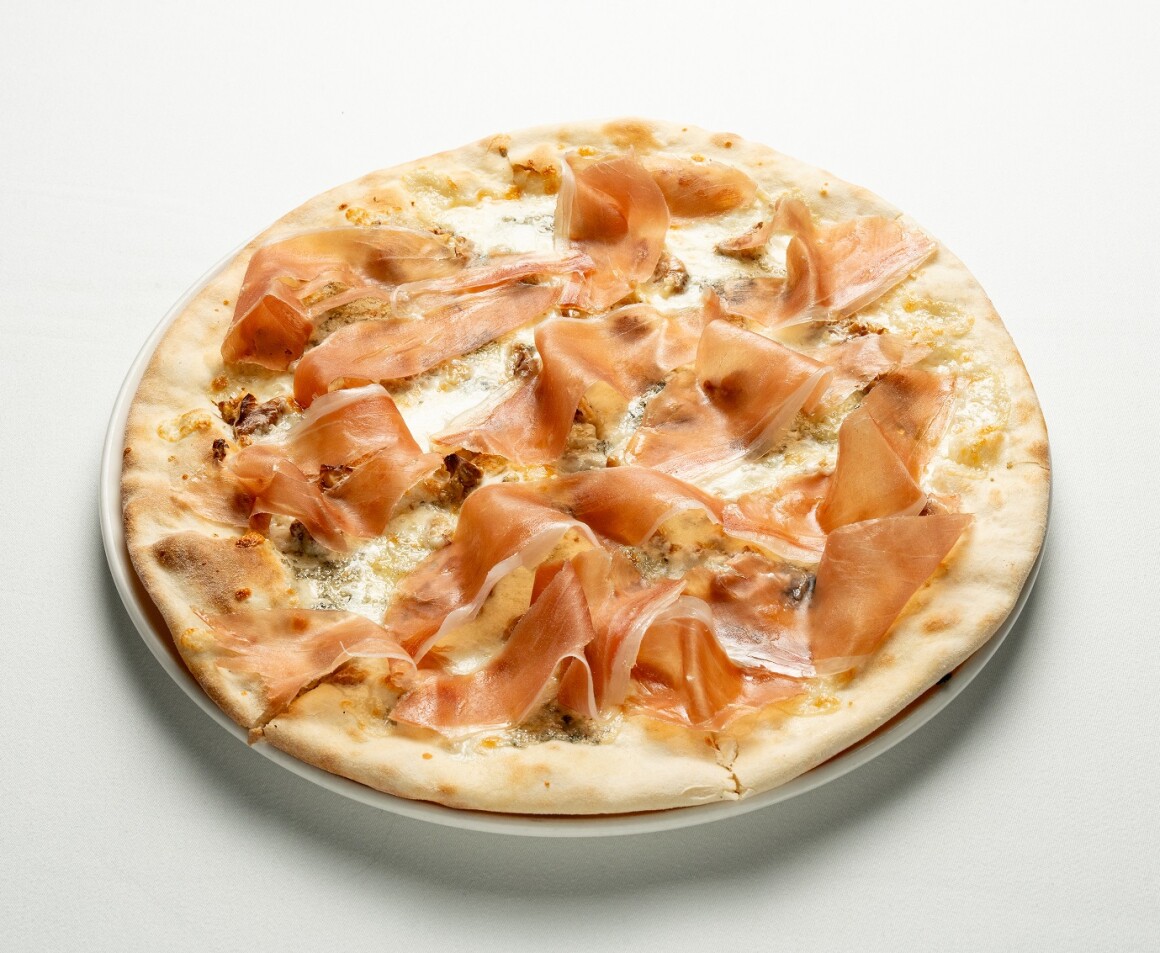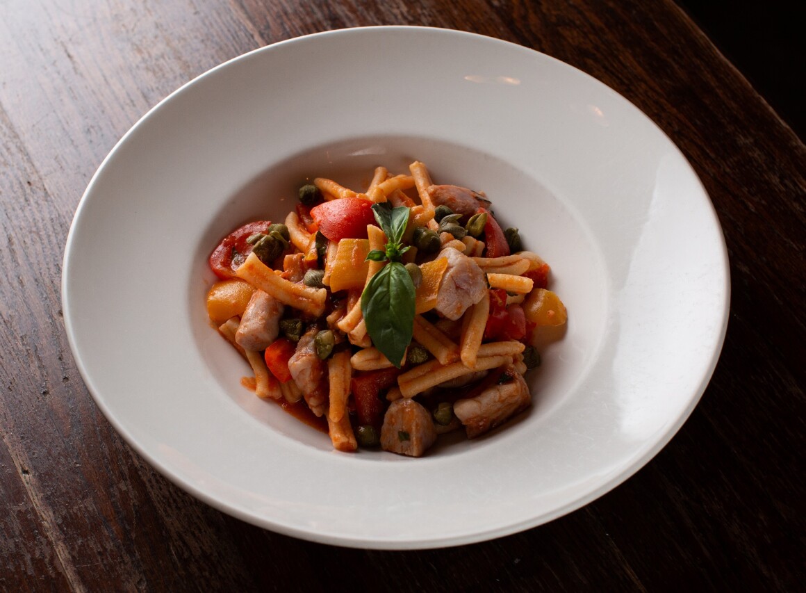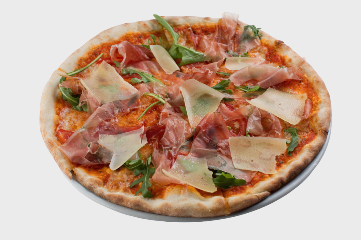 - Домашняя паста, запеченный слоеный пирог из тонкого теста с фаршем из пармской ветчины с луком, томатами, перцем чили и специями, с моцареллой и сливочным маслом