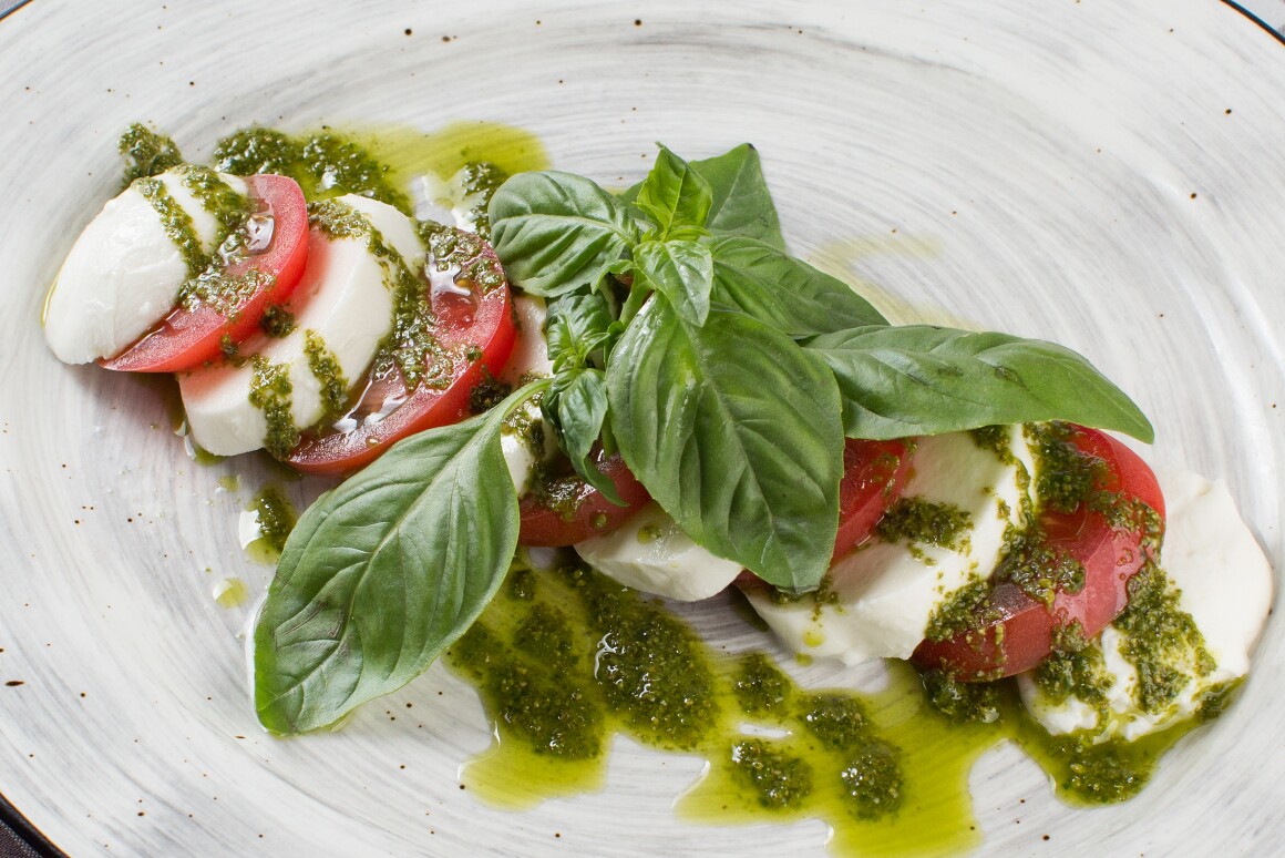 - КУРИНОЕ ФИЛЕ С ПОМИДОРОМ, МОЦАРЕЛЛОЙ И СОУСОМ ПЕСТО