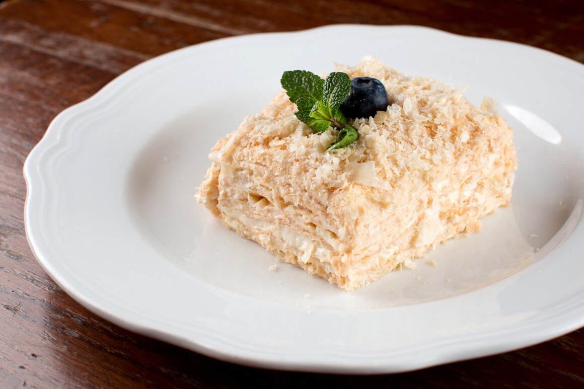 - Пирог из песочного теста с начинкой из яблок. Подается с заварным ванильным соусом из сливок, молока, яйца и ванили, и с шариком ванильно мороженого