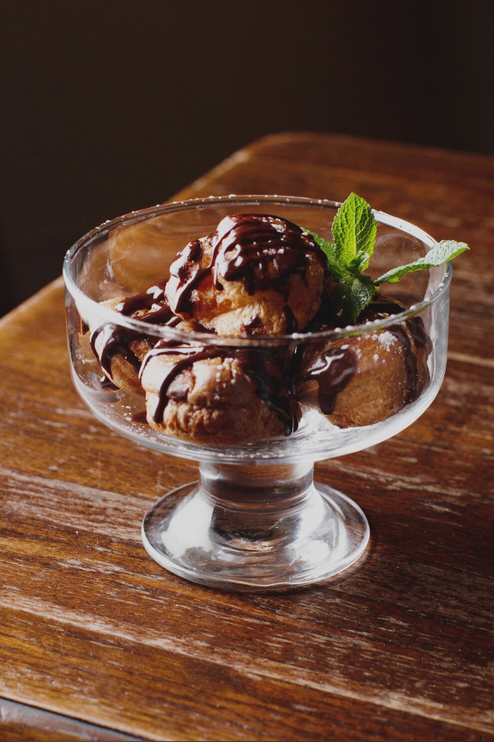 Пирожные из заварного теста с заварным, ванильным кремом и шоколадным соусом