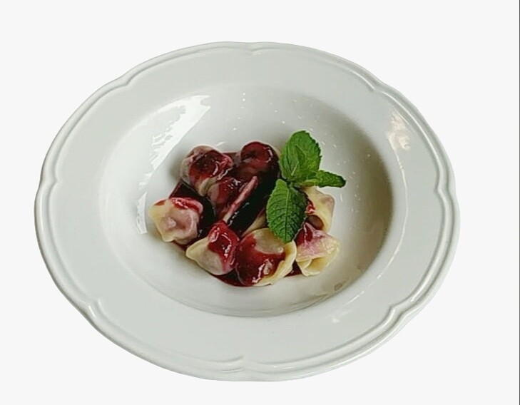 Равиоли с вишней со сметаной и ягодным соусом