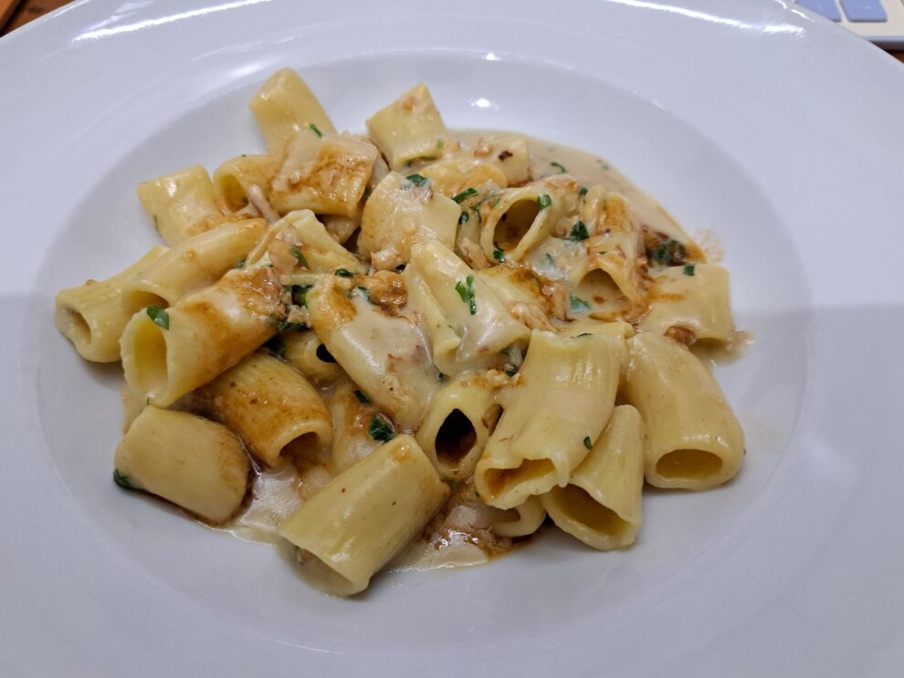 Домашняя паста с сыром рокфорти, сливочным маслом, грецким орехом, петрушкой и соусом демиглас